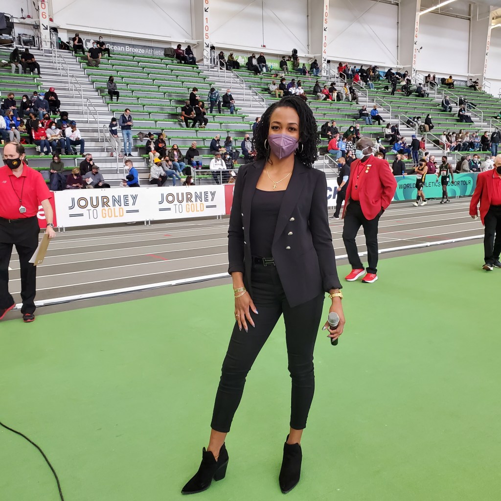 That’s how I came up with the idea to explore how I would do as an on field presenter. The person on the other side of the microphone interviewing the athletes at track meets. It was a way I could purposefully stay connected to the sport that I love so much. In a way that made sense for me.