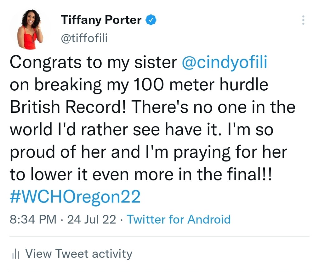 For those of you who don’t already know, my sister is a world class hurdler, two time Olympian, University of Michigan track & field hall of famer, and the newly crowned British Record holder. Yes, in case you weren’t aware, she broke my 100 meter hurdle record that I set in 2014 at the 2022 World Championships.