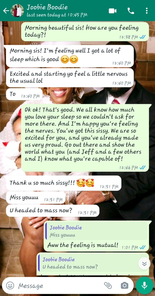 I remembered the leap of faith she took by moving to Arkansas to train with a new coach (shout out to Chris Johnson; thanks for getting baby sis ready).