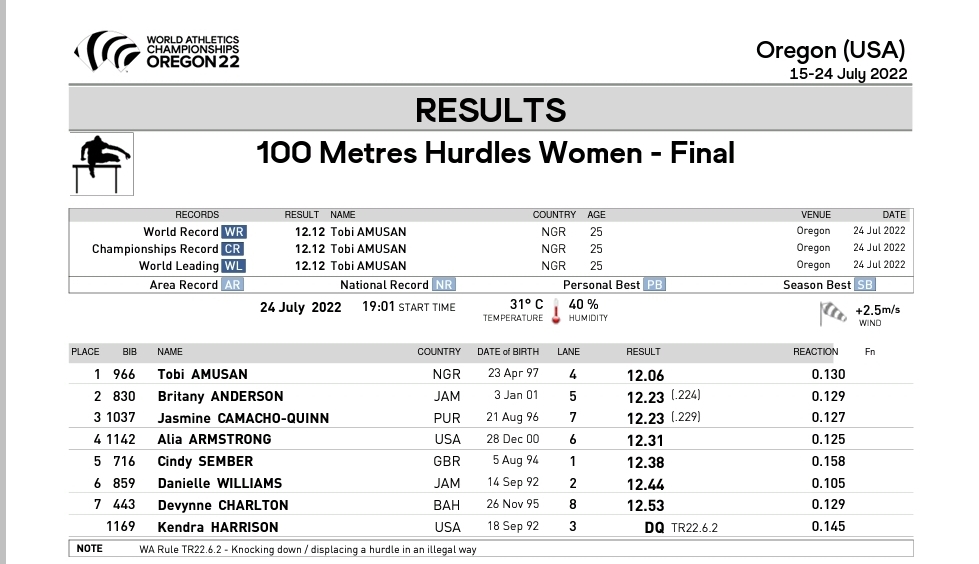The fan in me was still in shock by the 12.12 (+0.9 ) world record that Tobi Amusan of Nigeria had just ran (huge congrats to her).