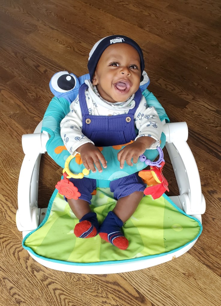 This portable seat is perfect for babies that have good neck control but aren’t quiet old enough to sit up by themselves yet. I love that it provides the little one with support and even has built in toys to help keep them entertained. The fabric portion is machine washable, and it is portable so you can position the seat in whichever room you desire. It also conveniently folds flat for travel or storage. Both of my children loved this chair and at $43 it’s at an affordable price point for most.